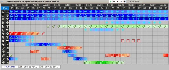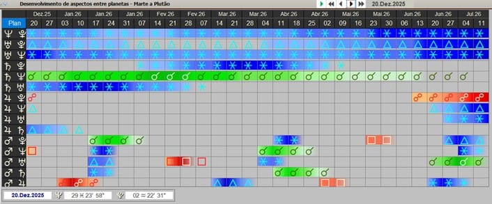 Marte tem um ciclo orbital do Sol de aprox. 2 anos. O planeta da Guerra serve de “disparador” para os acontecimentos. Marte estará a 0º de Aquário em janeiro de 2026!