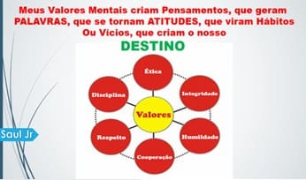 O que realmente faz a diferença, em uma vida, são os valores que consideramos verdadeiros para a nossa caminhada e, assim, nos tornarmos efetivamente Seres Lúcidos. Somos fruto da energia que produzimos com os nossos valores.... Precisamos levar em consideração alguns pontos Energéticos. Os Quais destaco: