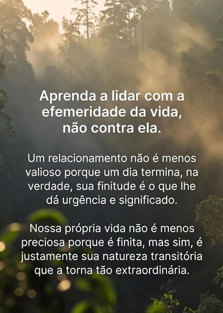 A efemeridade não é uma falha no sistema; é o sistema funcionando perfeitamente. Tudo o que nasce, morre; tudo o que começa, termina e tudo o que se une, eventualmente se separa. Resistir a essa verdade não a torna menos real, apenas nos torna mais infelizes.