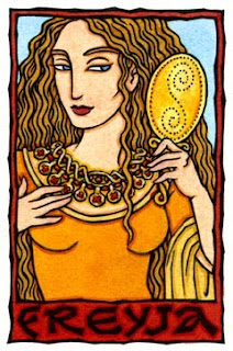 É também a deusa da magia e da adivinhação, da riqueza (as suas lágrimas transformavam-se em ouro) e líder das Valquírias (condutoras das almas dos mortos em combate).