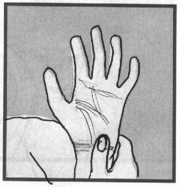 Procedimento: Pressionar e girar o polegar da outra mão durante 2 minutos como mostra a figura ao lado, descanse 30 segundos. Repita o procedimento até verificar melhora do sintoma.