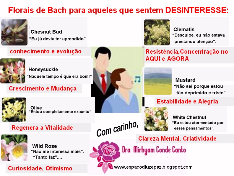 O floral direciona essas pessoas a reativar o gosto pela vida, a terem determinação e controle do próprio destino, fazendo isso com contentamento e não de desinteresse, exercendo em profundidade o seu livre arbítrio.