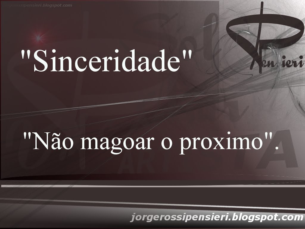 Sinceridade: qualidade ou condição daquilo ou daquele que é sincero. Hoje você será sincero, o dia todo, sem excessões.