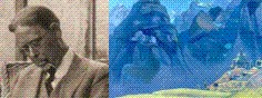 John Garrigues (1868 - 1944) e uma cena dos Himalaias, em quadro de Nicholas Roerich