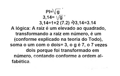 Eu corrigi e cheguei a uma conclusão: Pi= 3,14 = 1.7 Sendo g igual a 7; caso seguisse essa lógica alfabética falta elevar ao quadrado.
