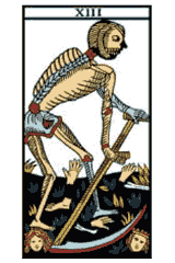 Transformação, mudança, fim de um ciclo e renascimento de algo novo são os simbolismos essenciais desta carta. Aqui nos confrontamos com a inexorável lei da vida, que determina a impermanência de tudo o que existe. Por mais resistência que apresentemos às mudanças, elas surgirão, forçando-nos a sair de nossa confortável acomodação. Em seu aspecto negativo, essa energia determina o medo das perdas e uma tendência a destruir, ao invés de consolidar.