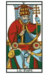 O Papa simboliza a sabedoria divina no homem, e a busca de respostas para seus questionamentos nos valores religiosos. O número cinco, aqui presente, é o número das mudanças que surgem para trazer crescimento e evolução, através do desenvolvimento de princípios como o altruísmo, a paciência e a serenidade. Em seu aspecto negativo, está presente no indivíduo que usa o poder da sabedoria para ajudar os demais, sem no entanto conseguir ajudar a si mesmo.