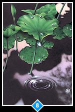 Comece olhando para a carta em si. Ela mostra uma folha de lótus recebendo pacificamente uma gota d’água que escorre mansamente por ela e pinga silenciosamente nas grandes águas retornando à terra. No comentário do livro o autor diz que aquela gota individual de água perde sua identidade quando se junta à vastidão da água que está embaixo. Querendo com isso falar do nosso ego e do quanto é importante a renúncia da luta para que a inocência vença.
